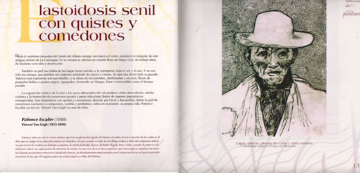 Tal es el caso de La mujer barbuda" de Sánchez Cotán, milagro de la naturaleza y asombro de su tiempo; o el del rinofima del caballero retratado por Holbein, donde la fealdad de una nariz puede ser a la vez la bandera de su arrogancia; o la tiña del niño de “La boda” de Goya, donde se muestra al golfillo feliz con su miseria; o la sífilis congénita de la vieja de “La buenaventura”, recondándonos que cada uno, es cada uno y su circunstancia; o la esclerodermia de la “Cabeza de mujer" de Henry Moore imponentemente fría como el retrato de una escultura; o el acné de la joven del grabado satírico de Paul Gavarni, soñadora ambiciosa de la luminosidad y transparencia de un cutis de ángel; o…